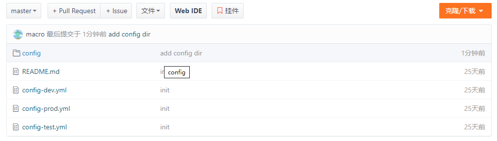 - 我们先修改Git仓库中dev分支下的config-dev.yml配置文件: