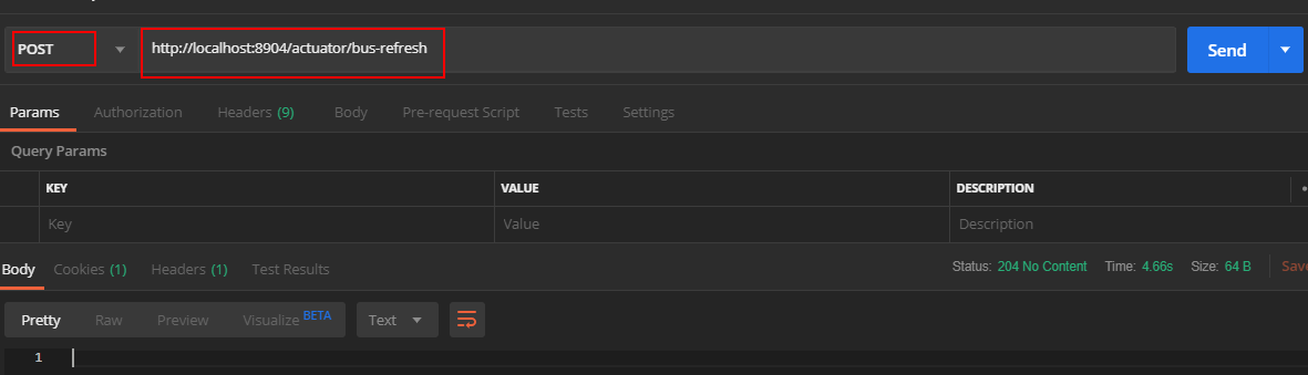 - 调用注册中心的接口刷新所有配置:http://localhost:8904/actuator/bus-refresh