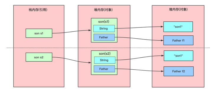 - 存储位置:static 成员变量属于类(即静态变量/类变量),存于方法区,(非 static )成员变量属于对象,存于堆内存;局部变量属于方法,存于 VM 栈中的局部变量表,基本类型变量直接存值,对象存放引用,指向堆内存中的对象本身。