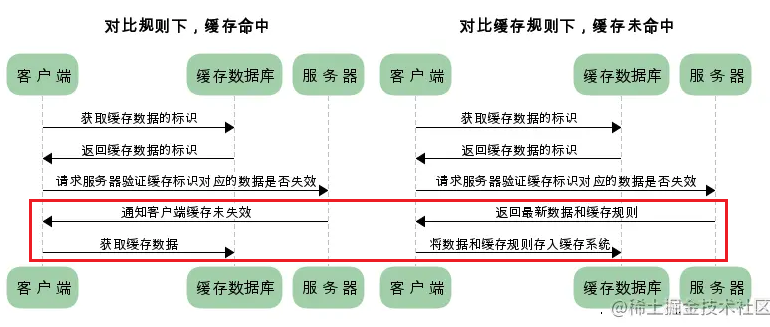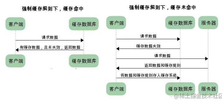 - 强制缓存:向浏览器的缓存数据库判断缓存是否失效;