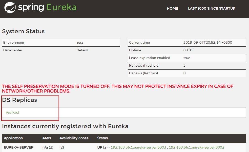 - 启动两个eureka-server,访问其中一个注册中心http://replica1:8002/发现另一个已经成为其备份